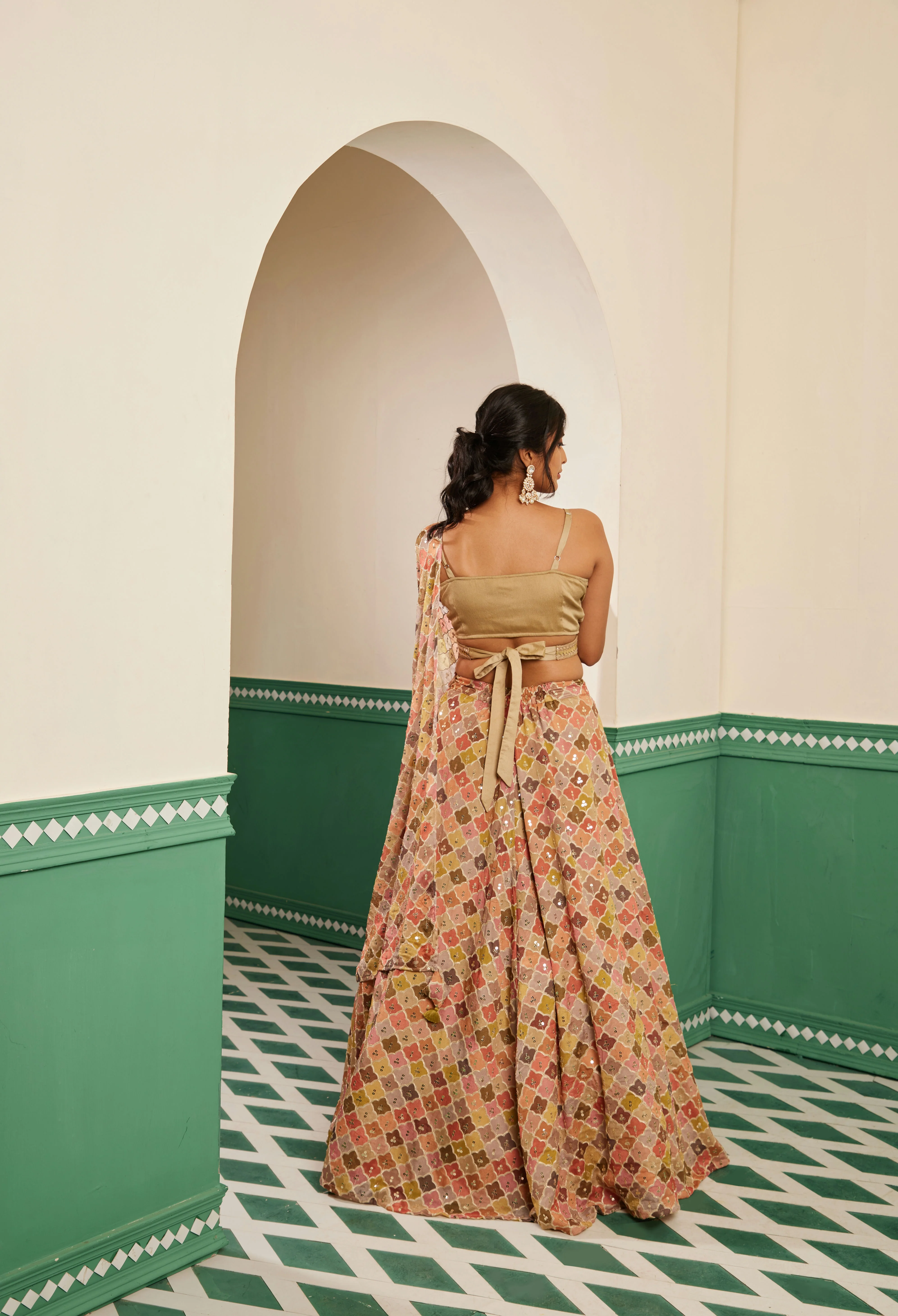 Get ready to dazzle in our "Sajda Champagne Wrap Blouse." This blouse is the perfect blend of elegance and style, in a delightful champagne hue. With its unique wrap design, it adds a touch of sophistication to any outfit.